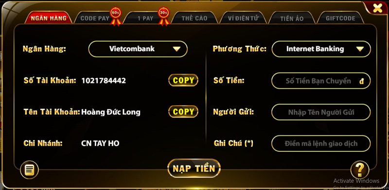 Bởi chỉ khi tạo lệnh nạp tiền thành công, tài khoản của bạn mới có số dư khả dụng để thoải mái đầu tư trong các trò chơi. Tương tự, nếu đã cá cược và giành chiến thắng thì bạn cần biết cách rút tiền để chuyển tiền thắng cược về thẻ ngân hàng hoặc đổi sang thẻ cào điện thoại.