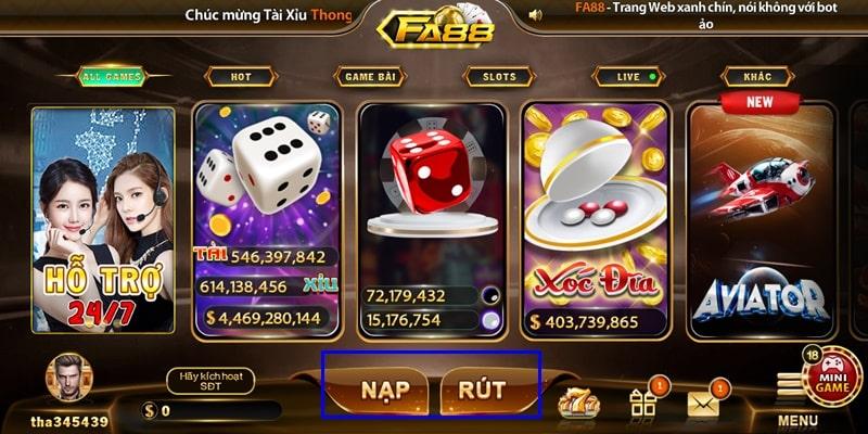 Nạp – rút tiền là tính năng quan trọng của FA88