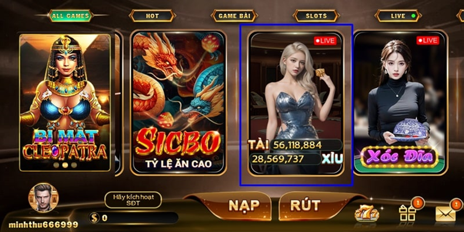 • Bước 4: Bạn có thể tìm phiên bản Tài Xỉu Live ngay trên giao diện chính của cổng game. Hoặc mở “Casino” => chọn “Tài Xỉu/ Sicbo” để xem các bàn đang chơi Tài Xỉu trực tiếp.